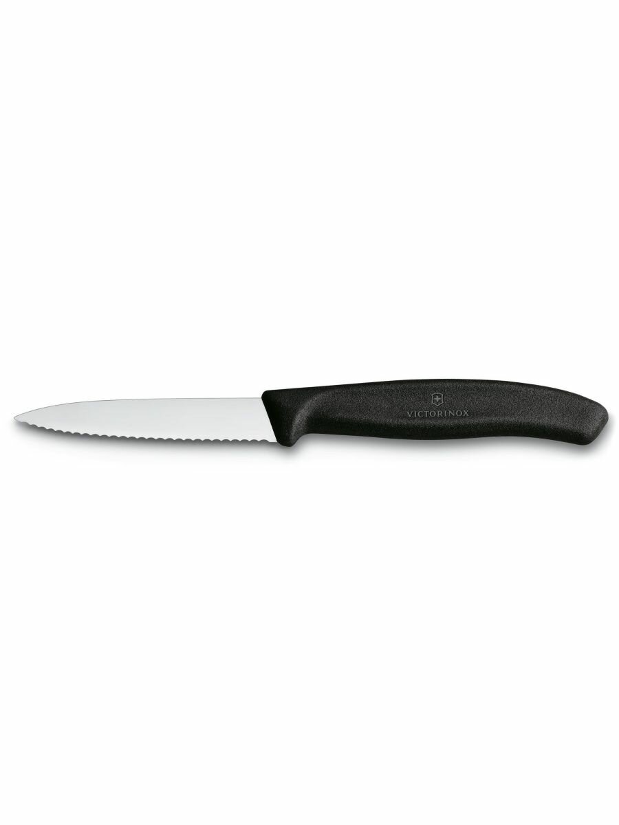 Нож для овощей VICTORINOX Swiss Classic, лезвие 8 см с волнистой заточкой и заострённым кончиком, черный 6.7633