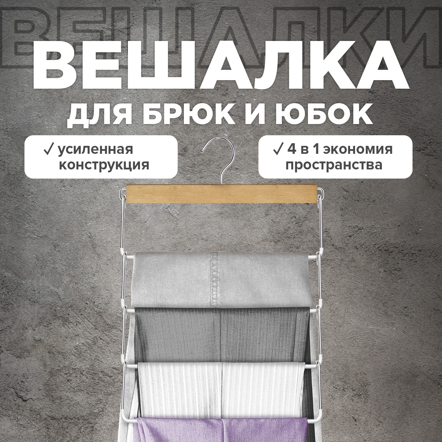 Вешалка для брюк и юбок Valiant, 4-х уровневая, секционная, с зажимами