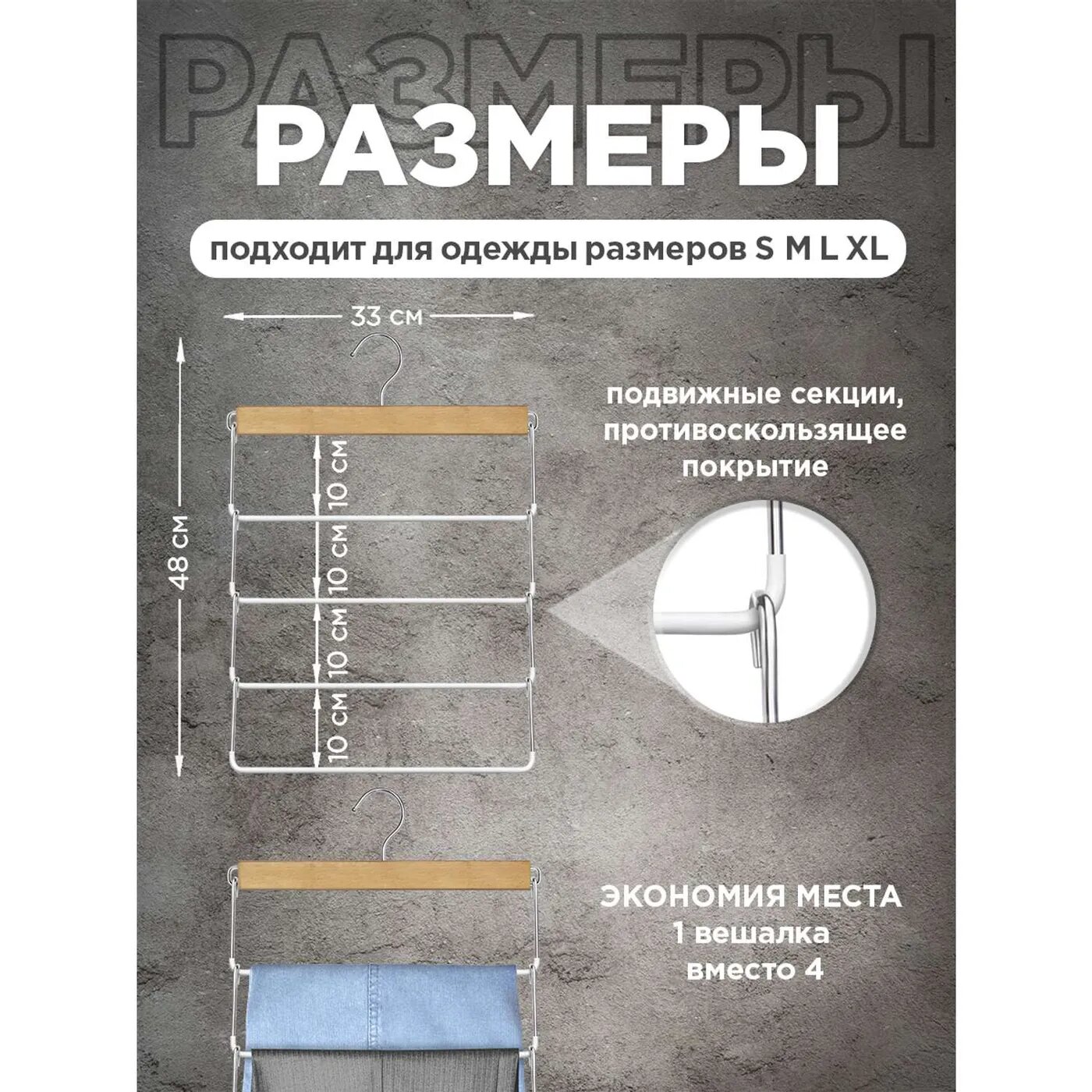 Набор 2 шт., плечики вешалки для одежды с мягким противоскользящим покрытием, 3 уровня