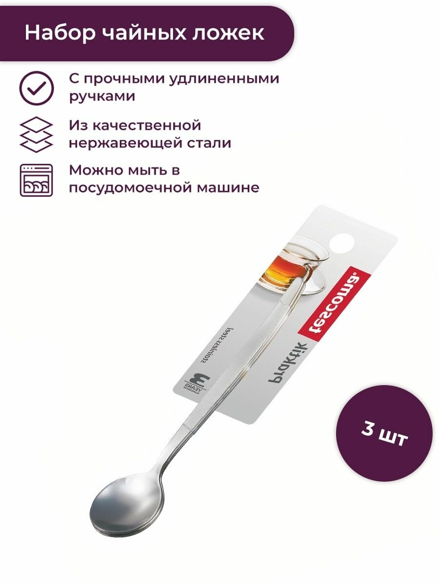Чайная ложка длинная Tescoma PRAKTIK 3шт., нержавеющая сталь. интересное: