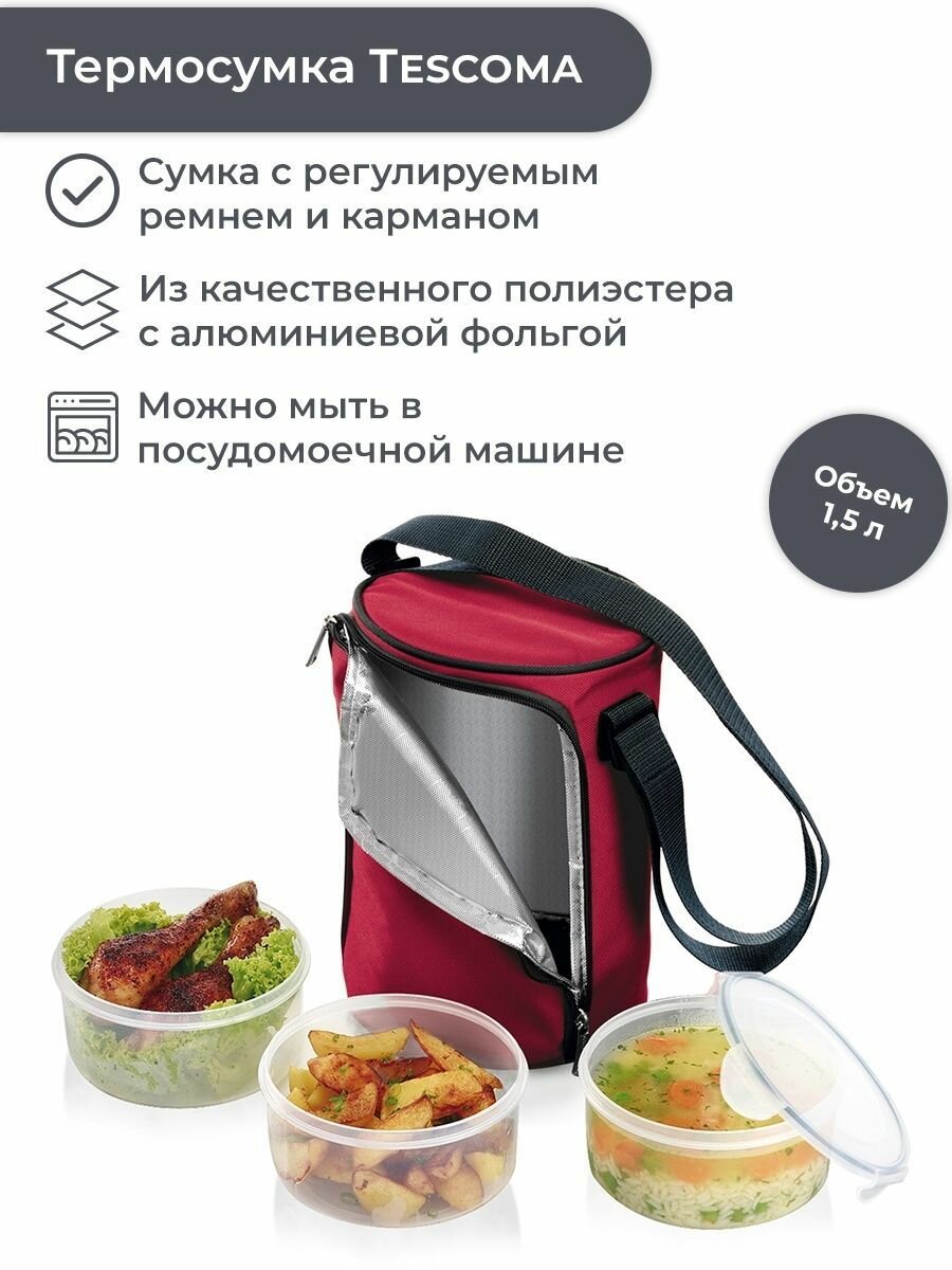 Купить Термосумка Tescoma для переноса еды FRESHBOX, с 3 емкостями 1,5 л, бордовый