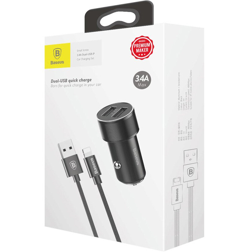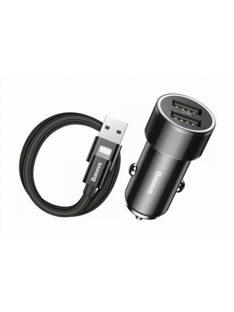 Автомобильное зарядное устройство Baseus Small Screw 3.4A Dual Lightning Car Charging Set TZXLD-A01, черный интересное: