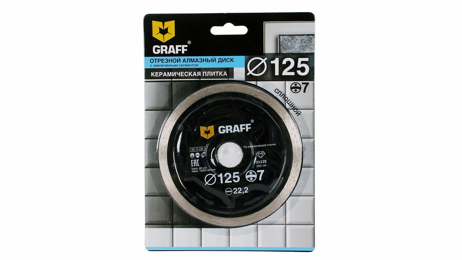 Диск алмазный GRAFFпо керамической плитке сплошной 125х7х2.0х22,23