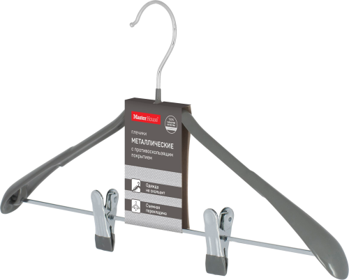 Другие товары 12 Master House Вешалка-плечики 43см, металл антискольз.покрыт.с клипсами Ева серый 60289/60524 Master House