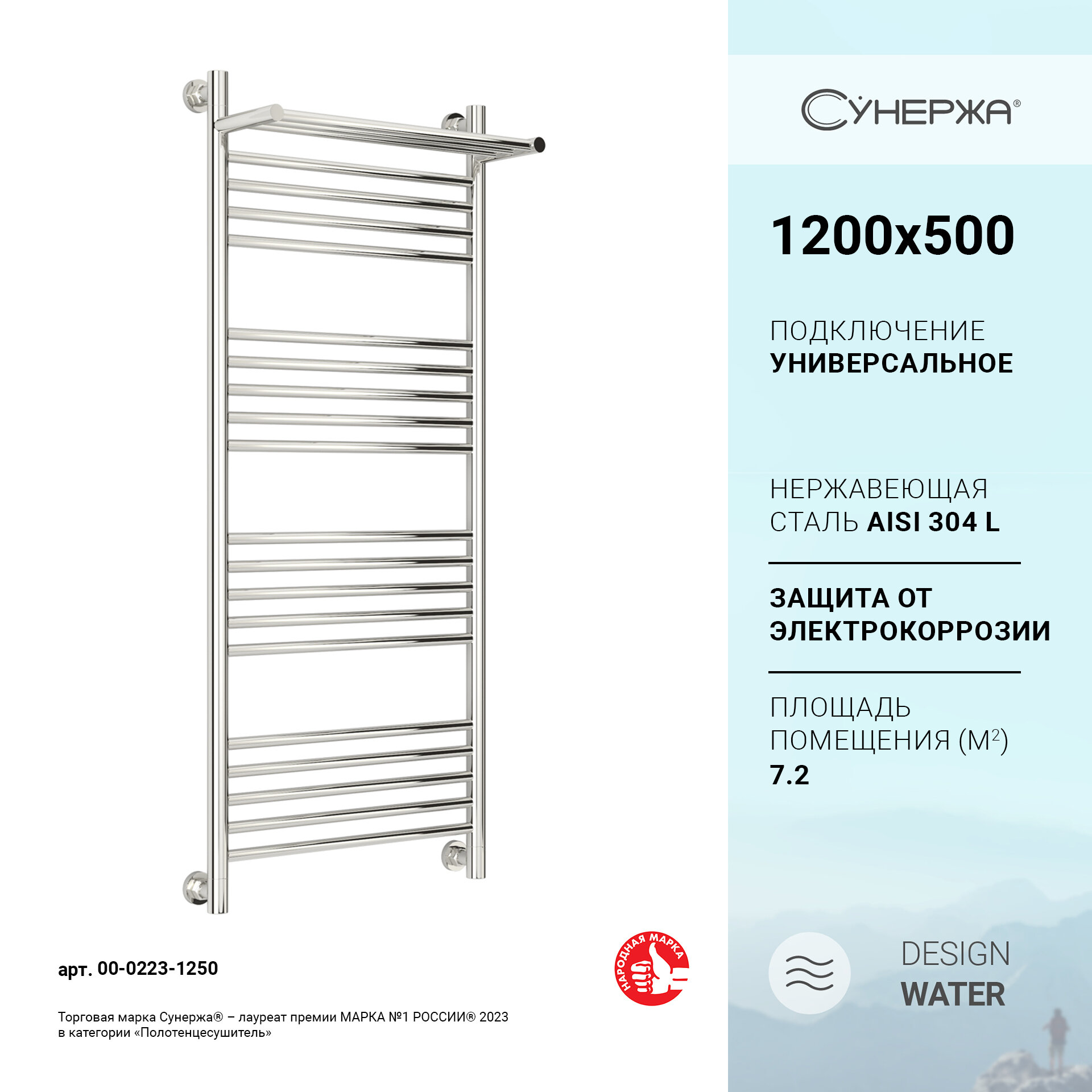 Полотенцесушитель водяной 1200x500 Сунержа Богема с полкой+ 00-0223-1250