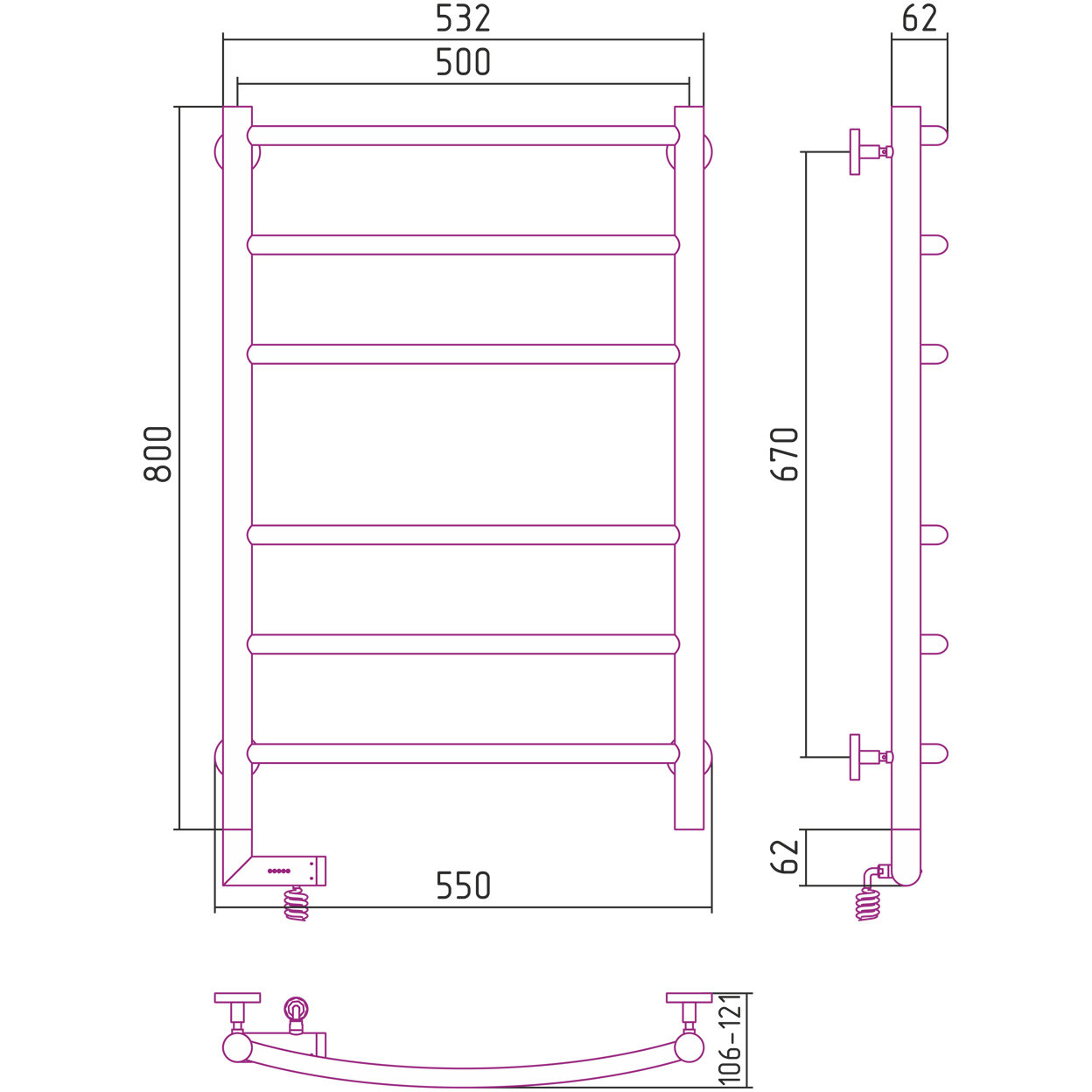 Полотенцесушитель Электрический Тругор Пэк сп 5 П 60х50 черный ВГП