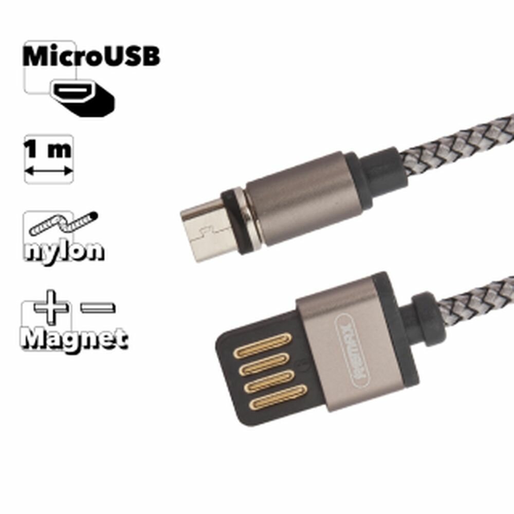 Кабель USB - MicroUSB Remax RC-095m (магнитный, оплетка ткань) Черный