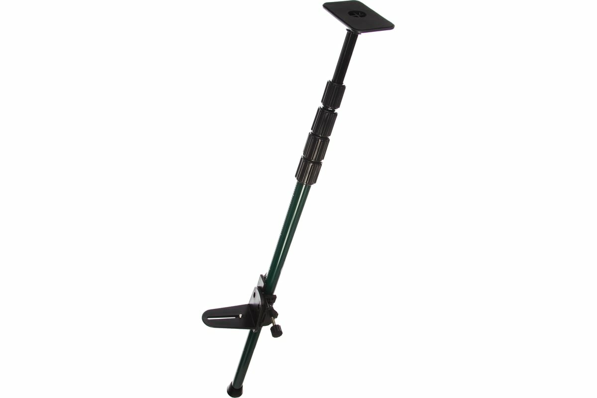 Хватает на полтора- два года ежедневных работ. Пробовал покупать другой марки, в этой же ценовой категории, ломались через пару месяцев. Очень удобно в работе, быстро складывается и раскладывается, легко переносить из комнаты в комнату. Хорошая длина, встаёт в распор на высоту до 320см, если нужно выше, подкладваем ящик. Для того что бы разместить уровень максимально близко к потолку, нужно перевернуть штангу к верх ногами и снять резиновый наконечник. |
