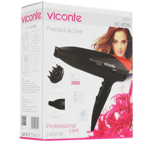 Ниже Вы можете прочитать отзывы на Фен для волос Viconte 2400 Вт для сушки и укладки с насадками (диффузор и концентратор), ознакомится с подробными характеристиками, посмотреть интересные обзоры и фотографии на Фен для волос Viconte 2400 Вт для сушки и укладки с насадками (диффузор и концентратор).