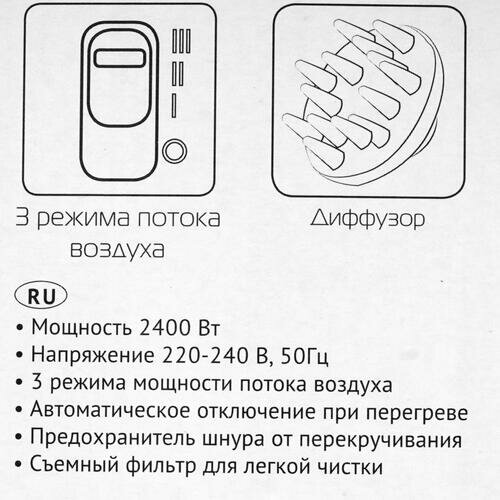 СохранитьФен для волос Viconte 2400 Вт для сушки и укладки с насадками (диффузор и концентратор) интересное: