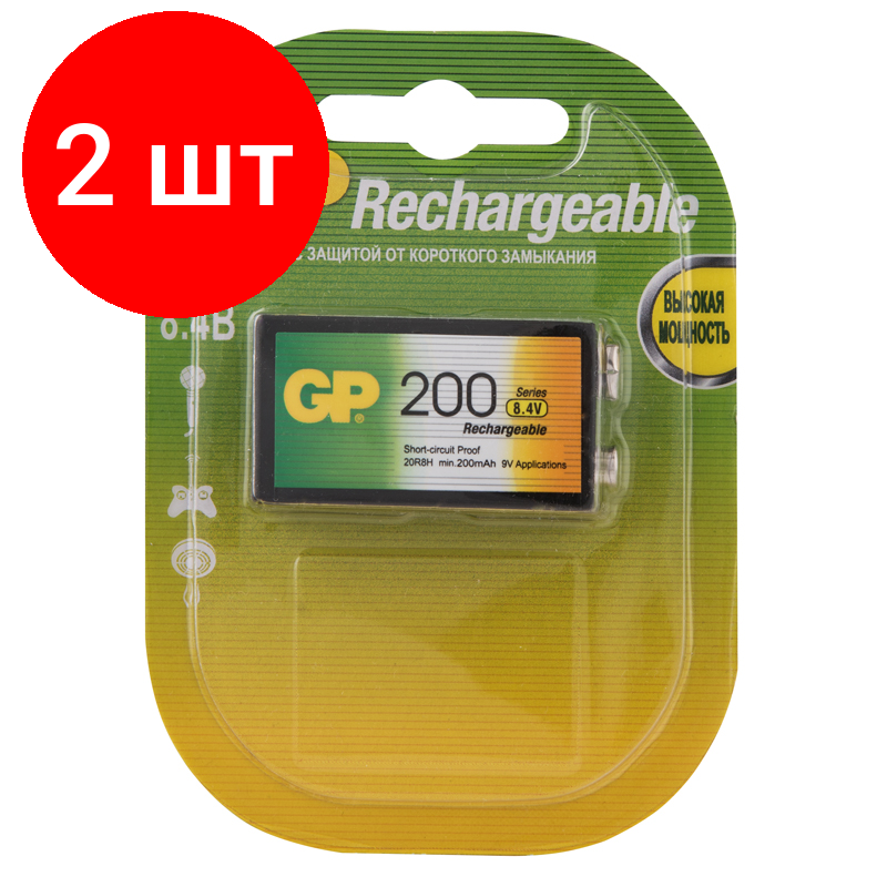 Аккумуляторная батарейка GP 20R8H 9V NiMH 200mAh GP 20R8H-BC1 упаковка 1 шт.