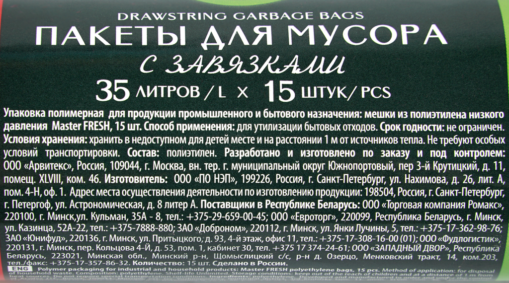 Ниже Вы можете прочитать отзывы на Пакеты для мусора MASTER FRESH с завязками, 35л, зеленые, 15шт, ознакомится с подробными характеристиками, посмотреть интересные обзоры и фотографии на Пакеты для мусора MASTER FRESH с завязками, 35л, зеленые, 15шт.