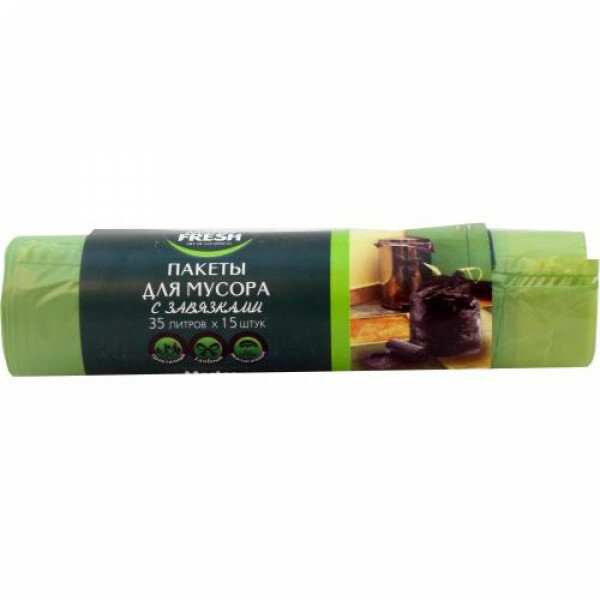 Пакеты для мусора Master FRESH Зеленые, с завязками, 14 мкм, 35 л, 15 шт