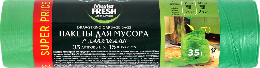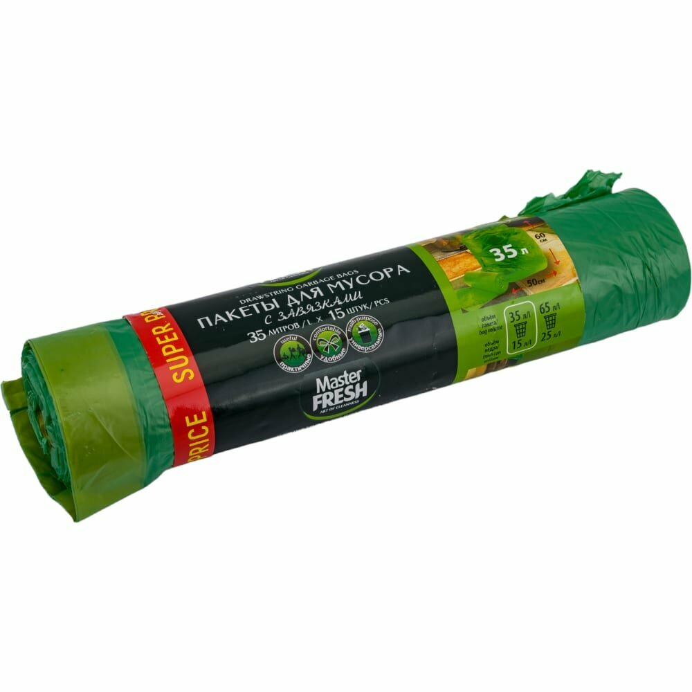 Пакеты для мусора 35л/15шт (с завязк.) Master FRESH MFGB35-15R