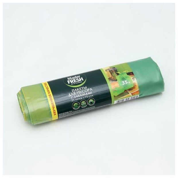 Пакеты для мусора с завязками 35 л/15шт,14мкм,зеленые,MFGB35–15R,С0006162 Master FRESH (арт. 828785)