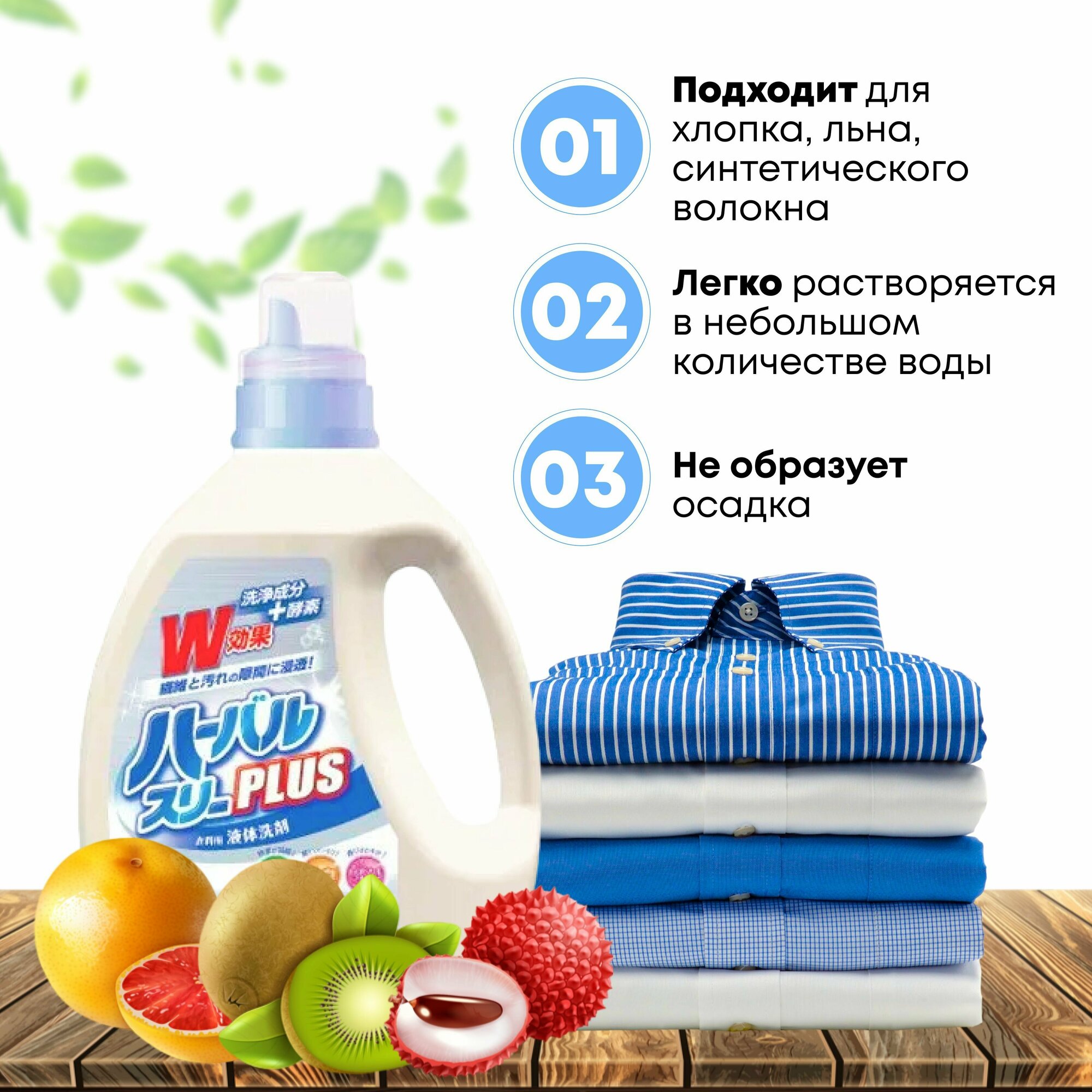 Mitsuei Herbar Three Plus Гель для стирки дезодорирующий с ферментами и ароматом фруктов 2 кг