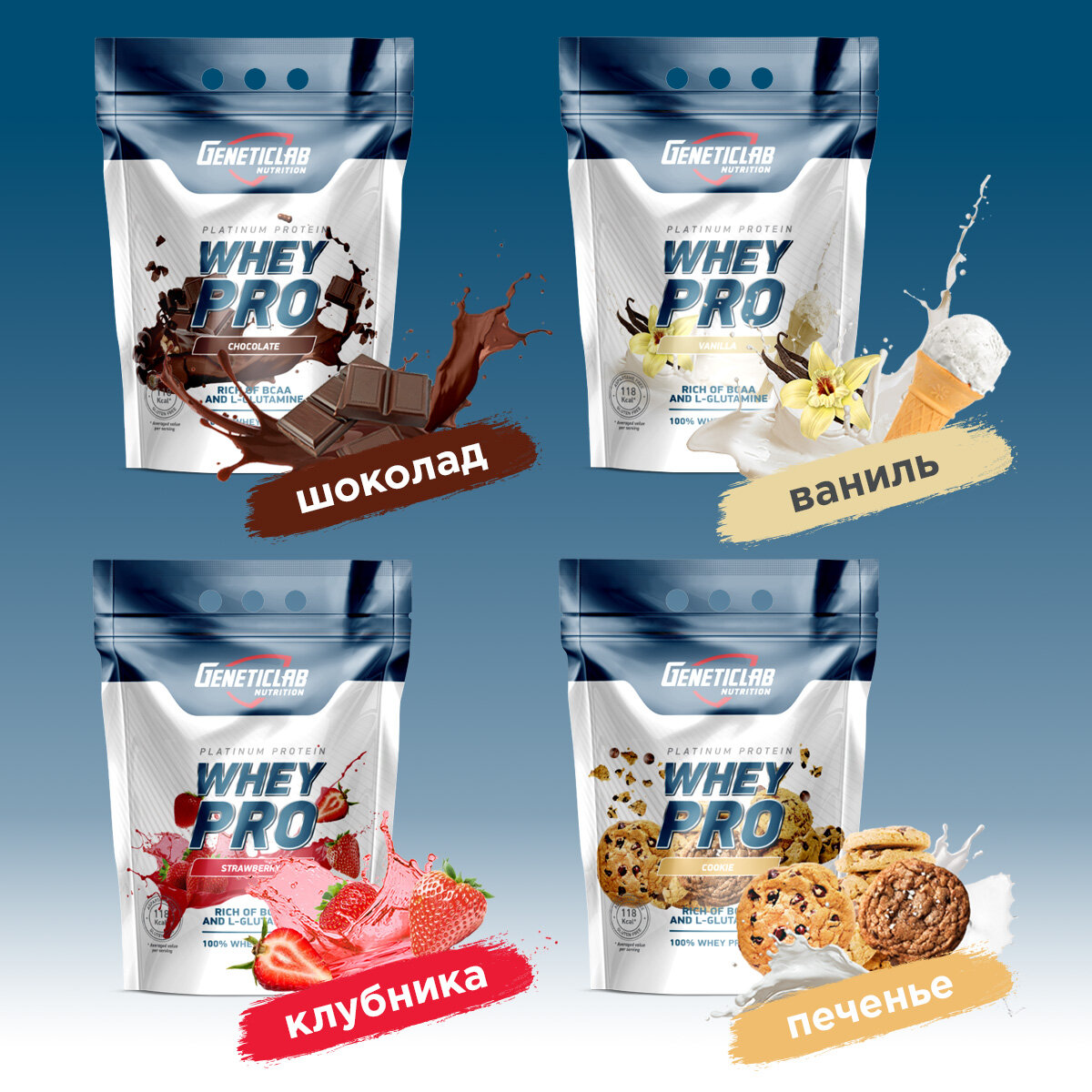 Протеин Geneticlab "Whey Pro", сывороточный, 1 кг, банан-земляника