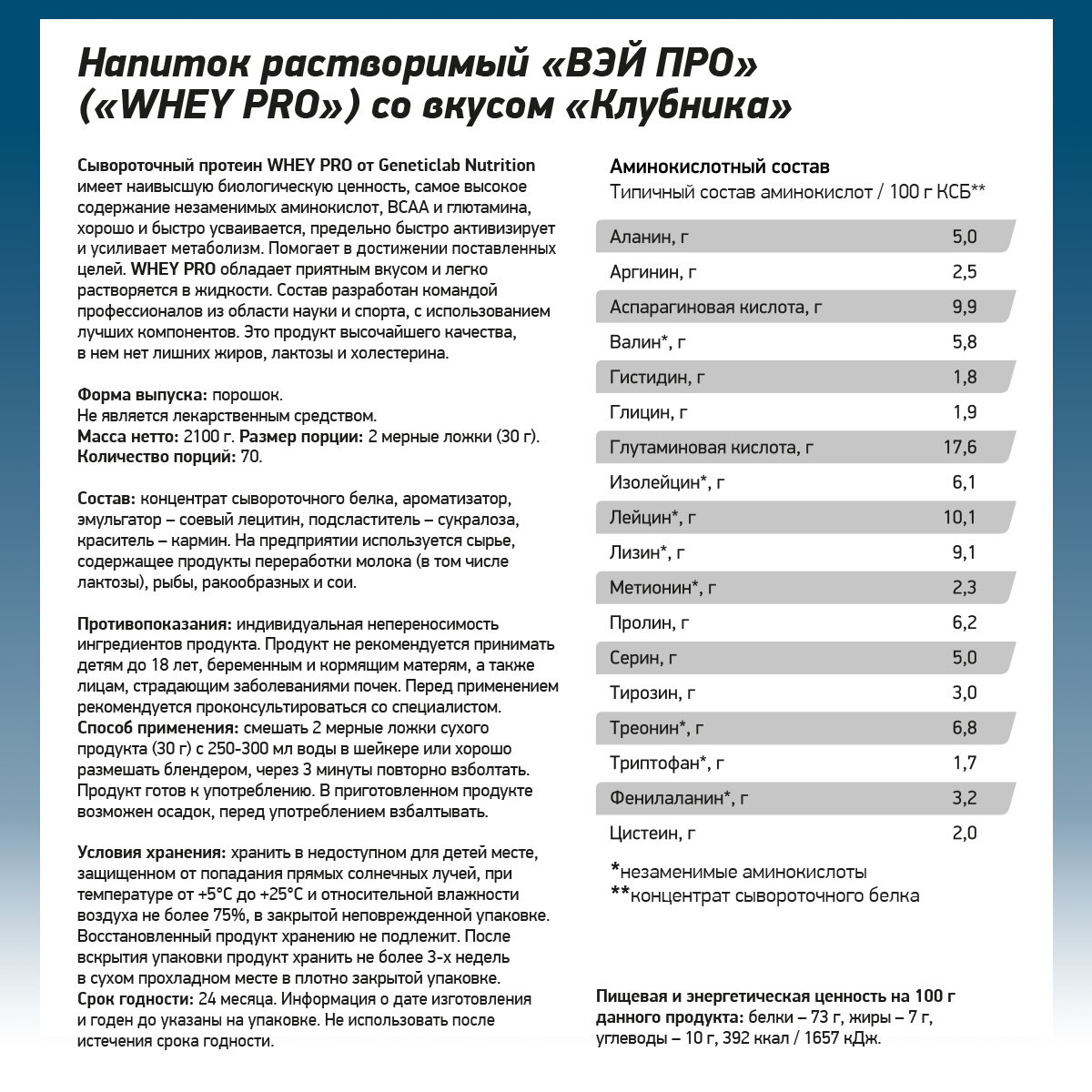 Сывороточный протеин Geneticlab "Whey Pro", клубника, 1 кг