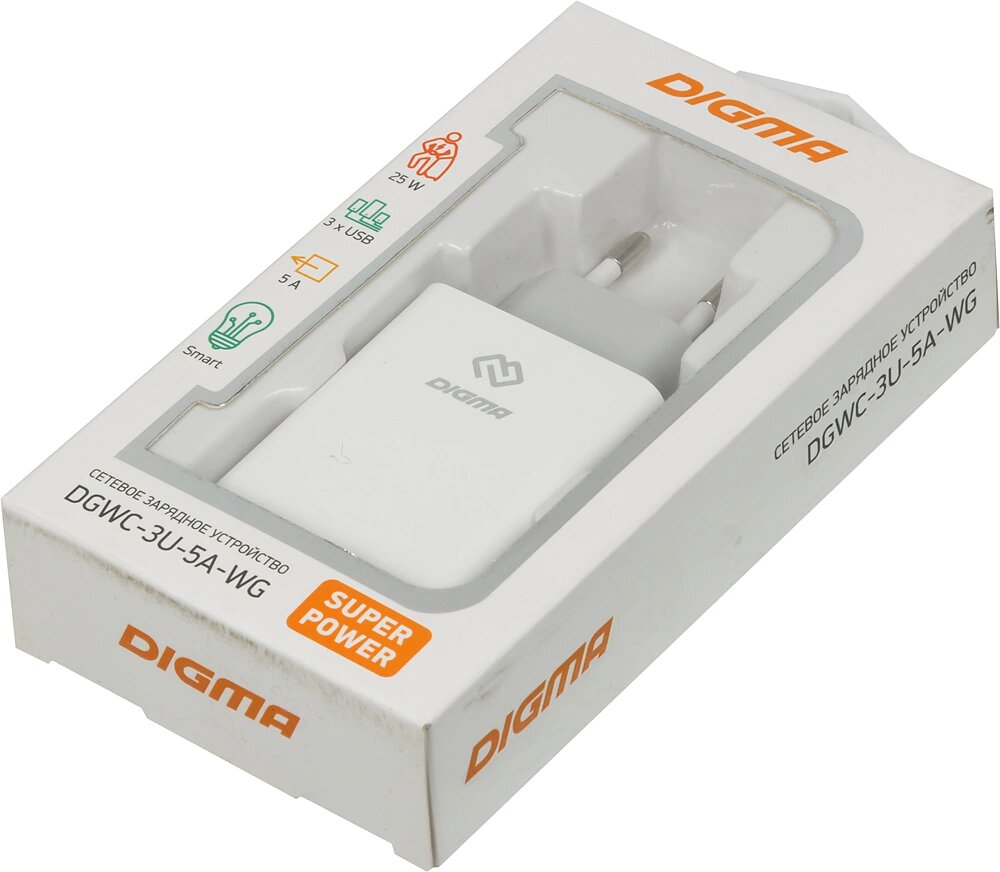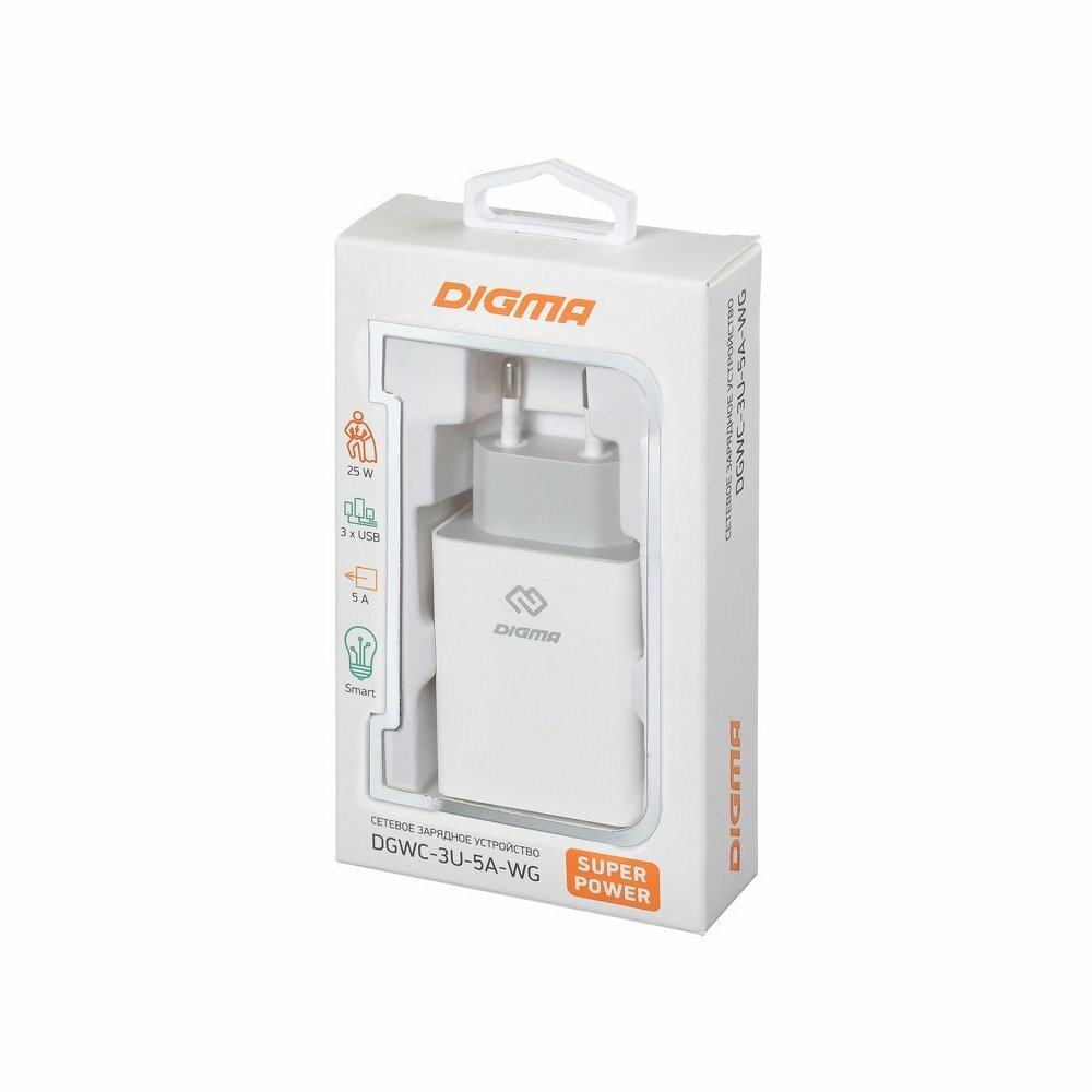 Сетевое зарядное устройство DIGMA DGWC-3U-5A-WG, белый