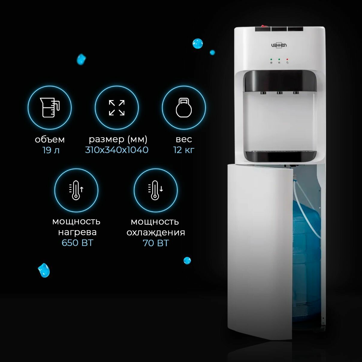 Кулер для воды VATTEN L45WE, напольный, бутыль снизу, 3 крана, белый (5571)