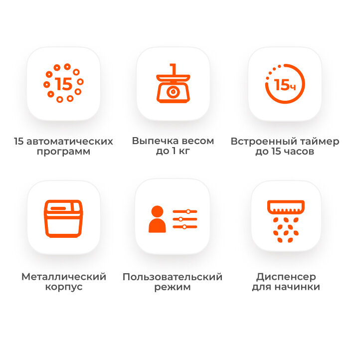 В хлебопечке есть 15 разных программ и для хлеба, и для сладких штук. Кексы, варенье, джем и и.д ?Глубокая дежа. Замес происходит равномерно. Удобный деспенчер для добавления разных начинок. |
