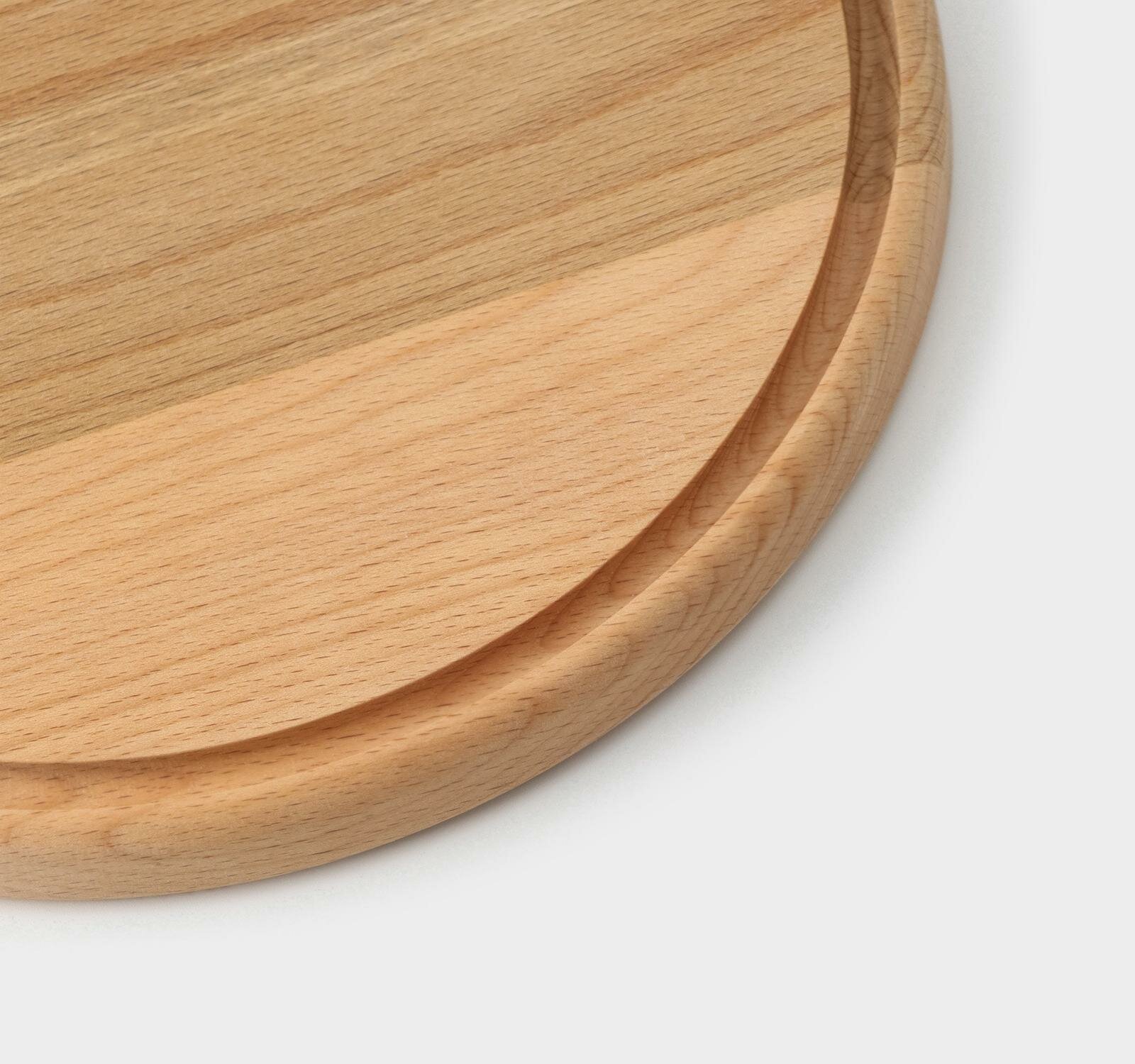 Доскa рaзделочнaя с кровостоком Премиум «Круглaя», d=25 см, бук