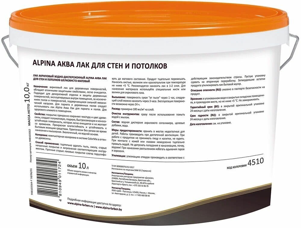 СохранитьЛак акриловый Alpina аква для стен и потолков глянц. 10 л (1) "" интересное: