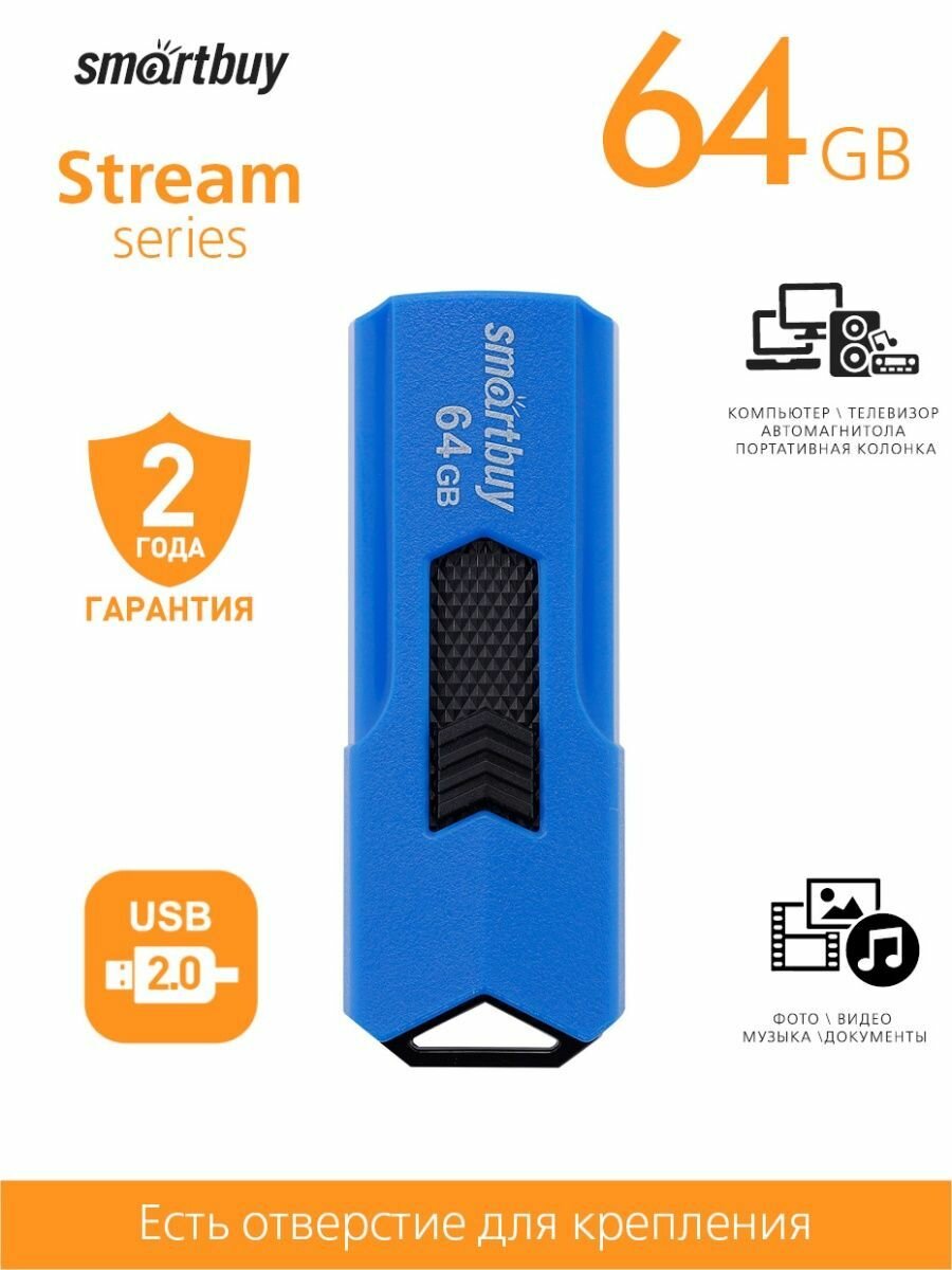 Флеш-накопитель USB 2.0 Smartbuy 64GB STREAM Blue (SB64GBST-B)