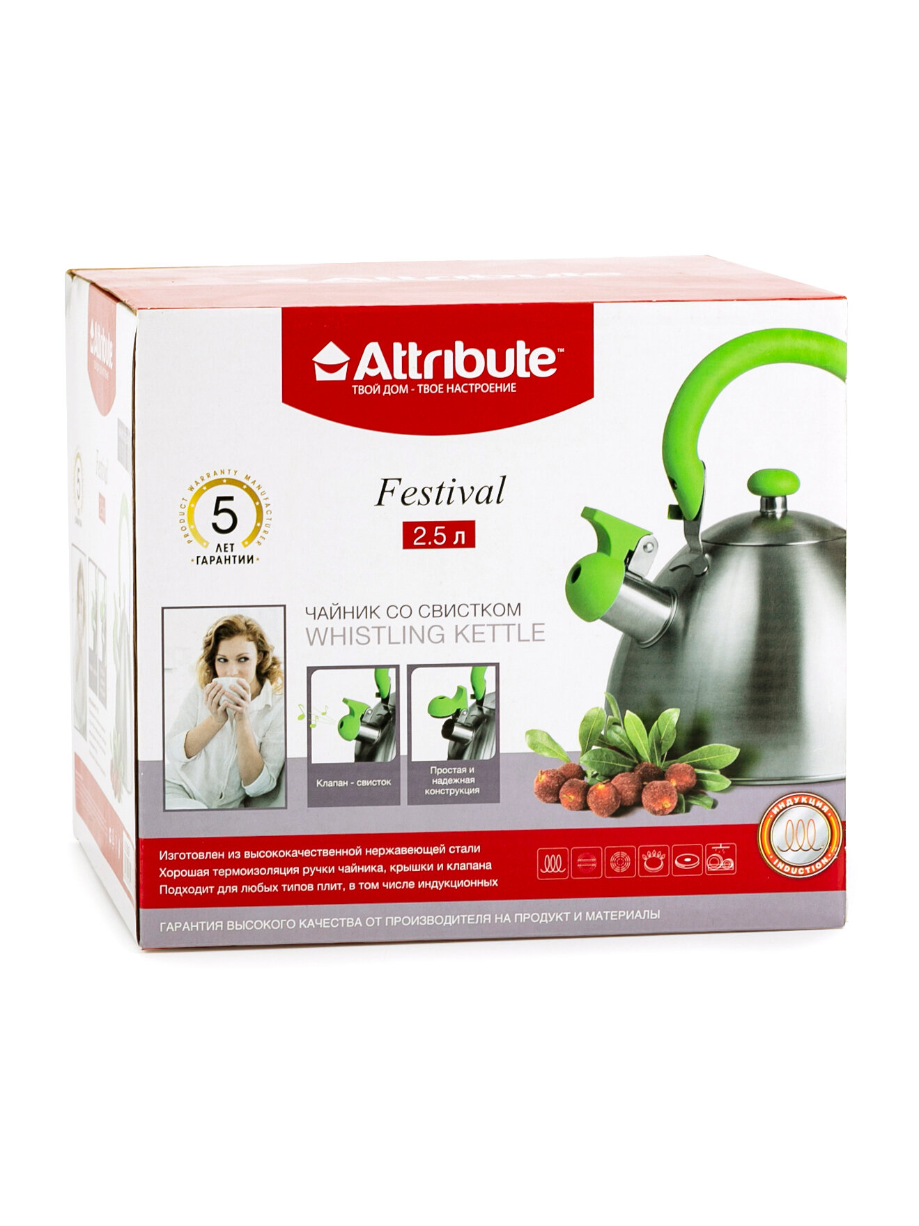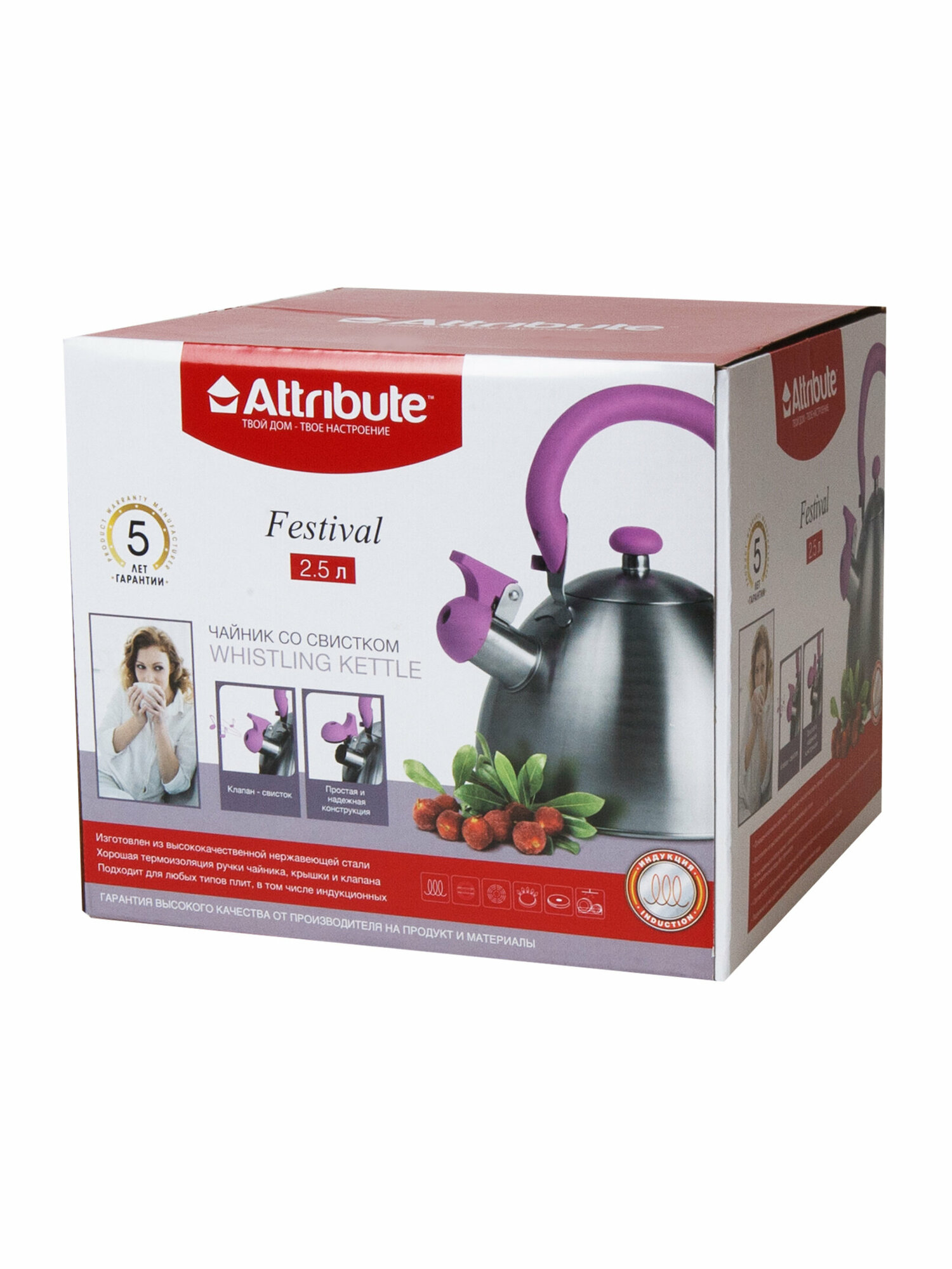 Чайник для плиты Attribute ASS309 Festival 2.5л