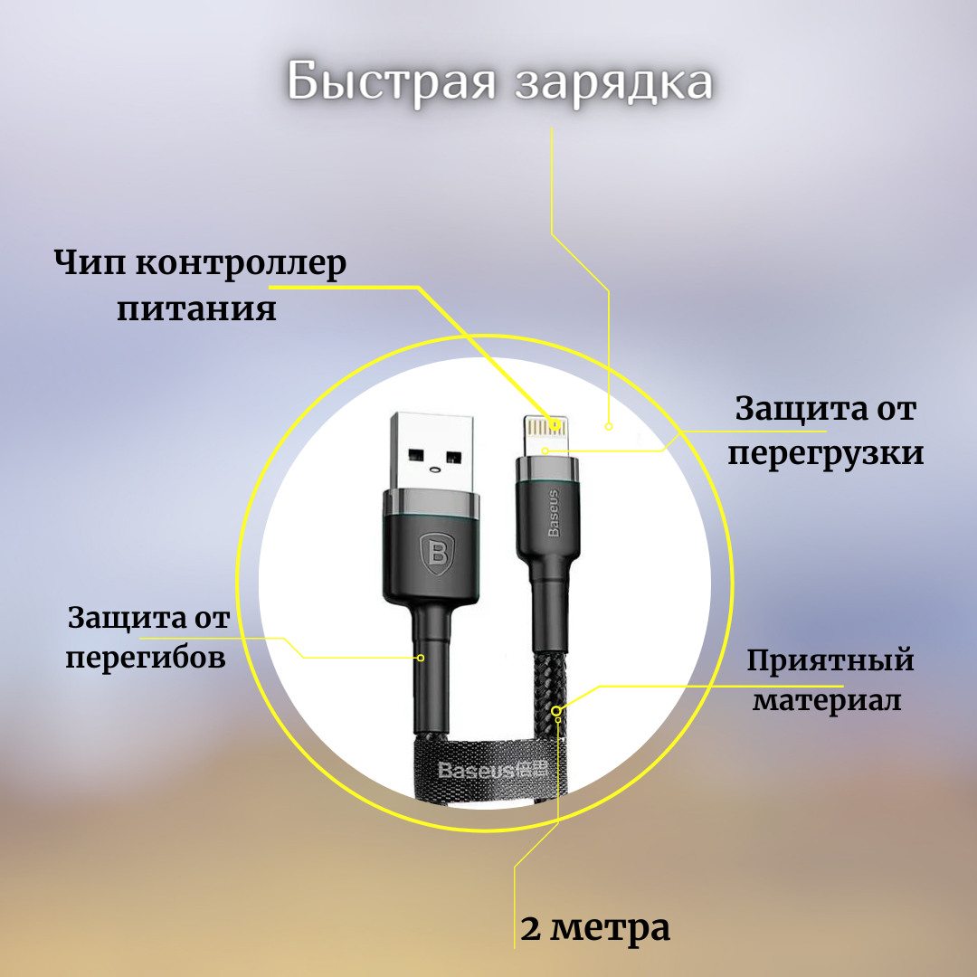 СохранитьКабель для айфон USB BASEUS Cafule USB - Lightning, 1.5А, 7,5W, 2 м, черный+серый интересное: