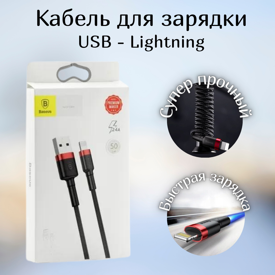 Кабель Baseus Lightning - USB для быстрой зарядки Apple, iPhone, iPad, AirPods, кабель зарядка для айфон 1м, 2,4А