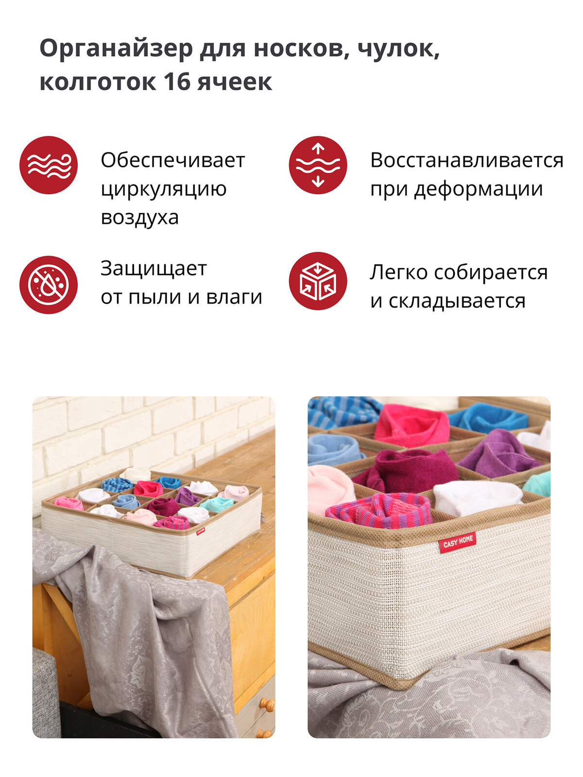 Органайзер Casy Home для носков, чулков, колготок, 16 ячеек