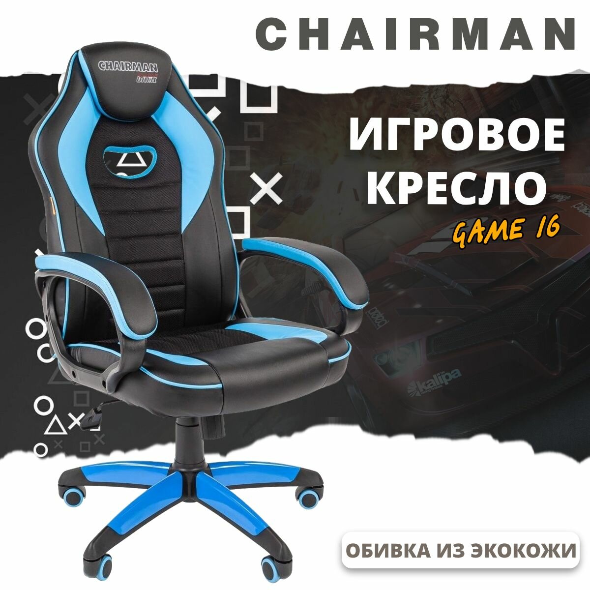 Купить Игровое компьютерное кресло CHAIRMAN GAME 16, экокожа, черный/голубой