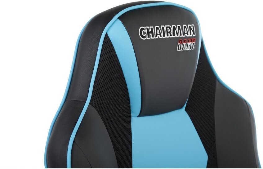 Купить Кресло игровое CHAIRMAN GAME 17, экокожа черный/голубой