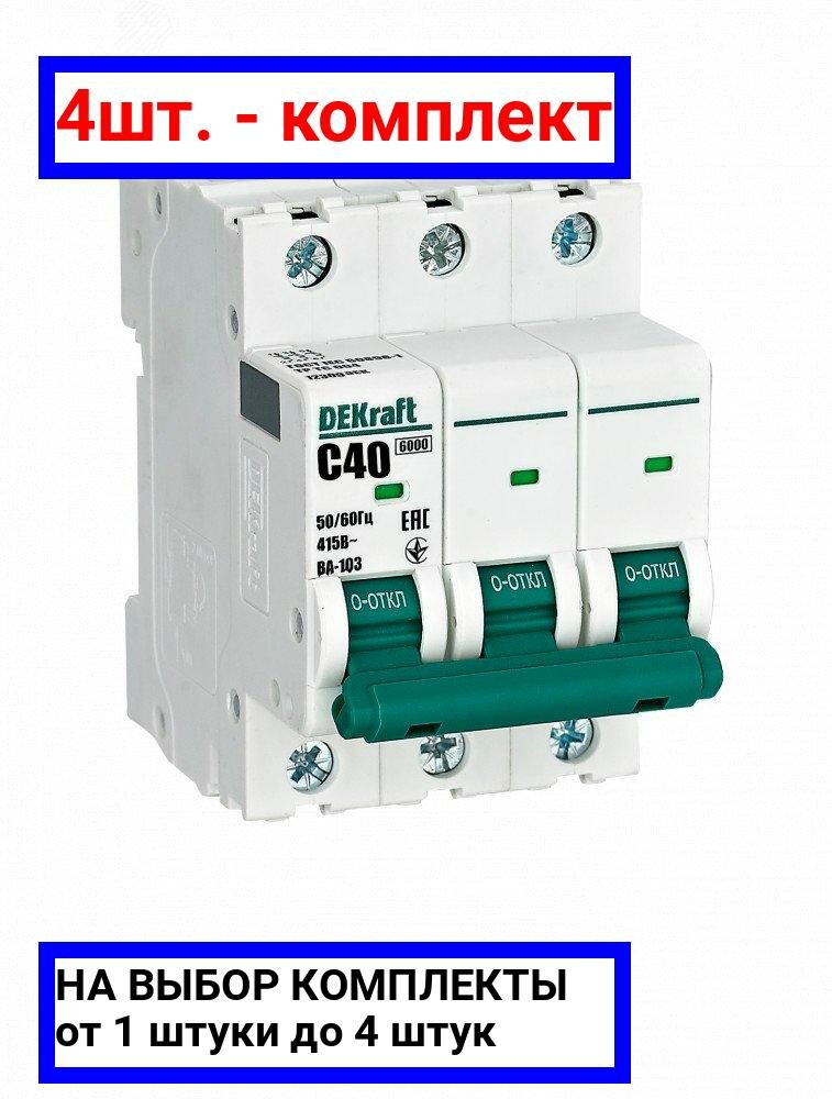 Сохранить4шт. - Выключатель автоматический 3Р 40А х-ка C ВА-103 6кА / Dekraft; арт. 12309DEK; оригинал / - комплект 4шт интересное: