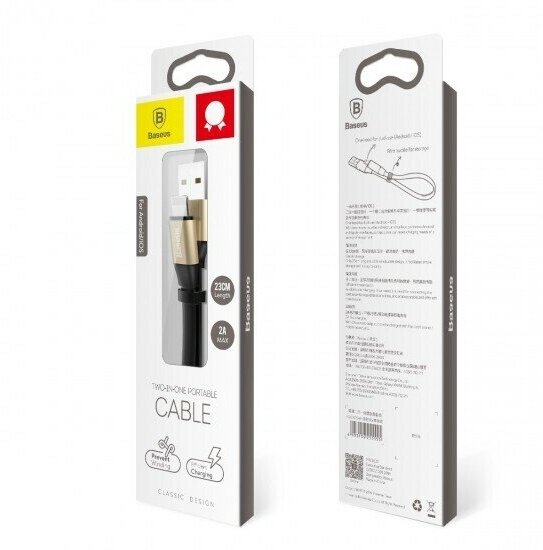 USB дата кабель Baseus Two-in-one Portable Cable, 010845 Золотой
