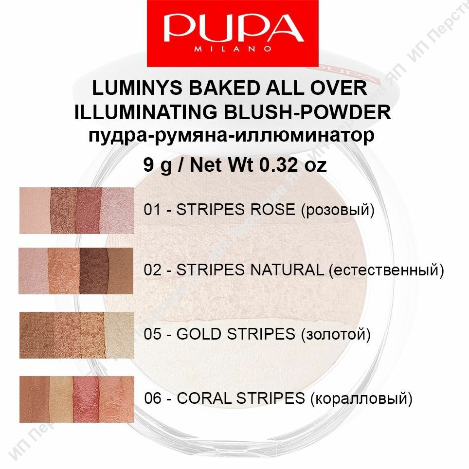 Pupa LUMINYS BAKED ALL OVER Мерцающая Пудра - румяна- иллуминатор универсальная для лица и тела тон 02, Stripes natural (натуральные полосы) 9гр