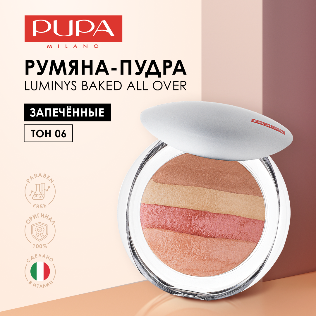 Купить Pupa Румяна для лица универсальные пудра LUMINYS BAKED ALL OVER №06 кораловые полосы