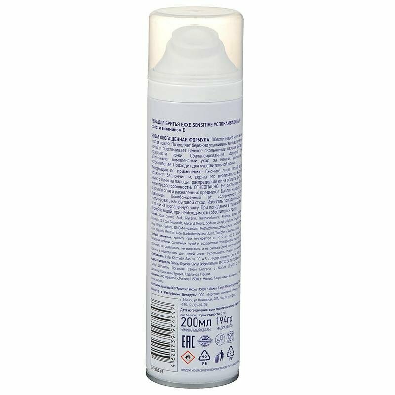 Lider Kozmetik San. ve TIC. A.S./ Лидер Козметик Сан. ве тидж. А.Ш. Пена для бритья EXXE Sensitive, 200 мл
