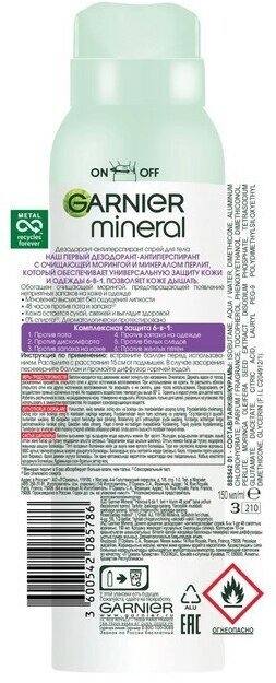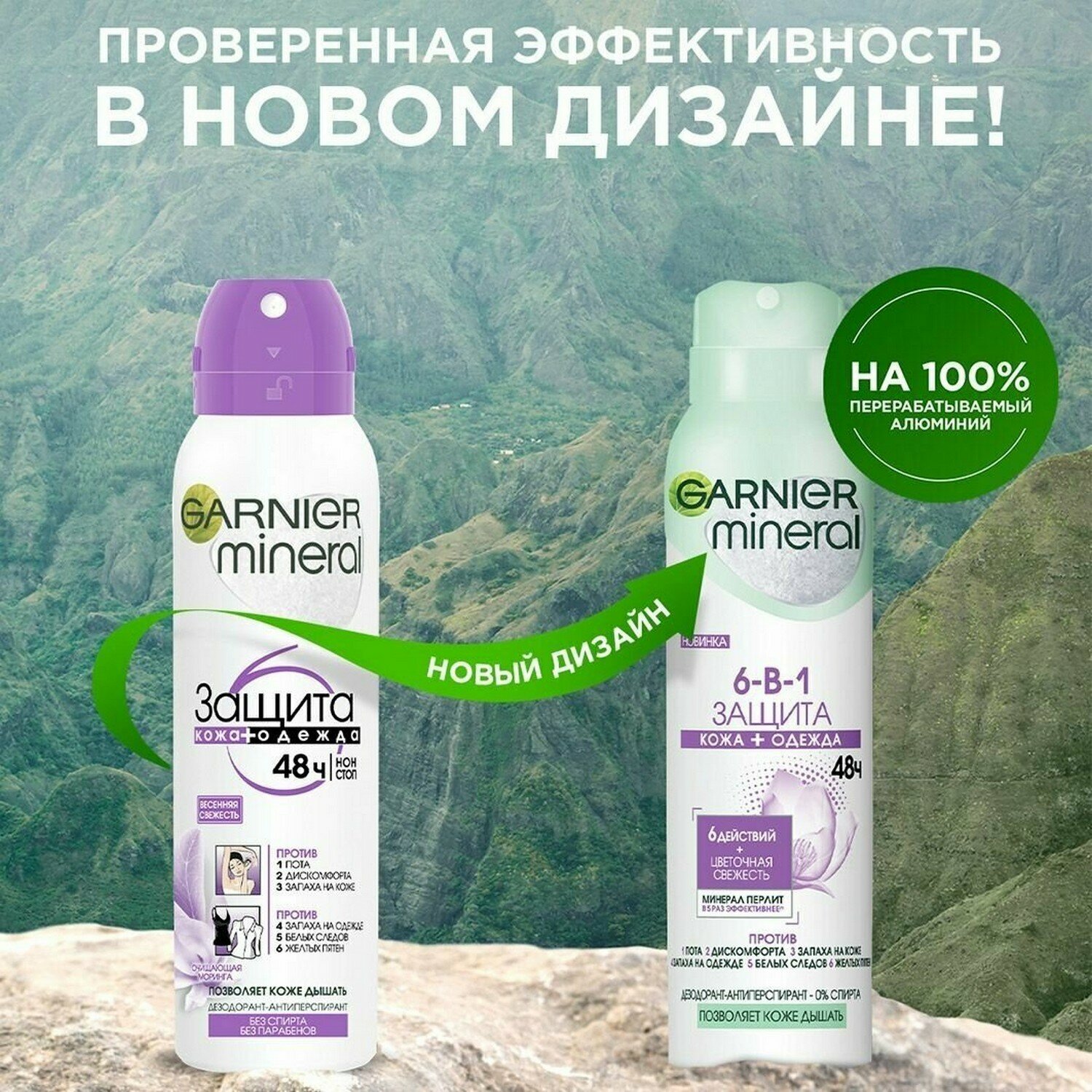 Garnier Дезодорант-антиперспирант спрей "Mineral, Защита 6, Весенняя свежесть", без спирта, защита 48 часов, женский, 150 мл