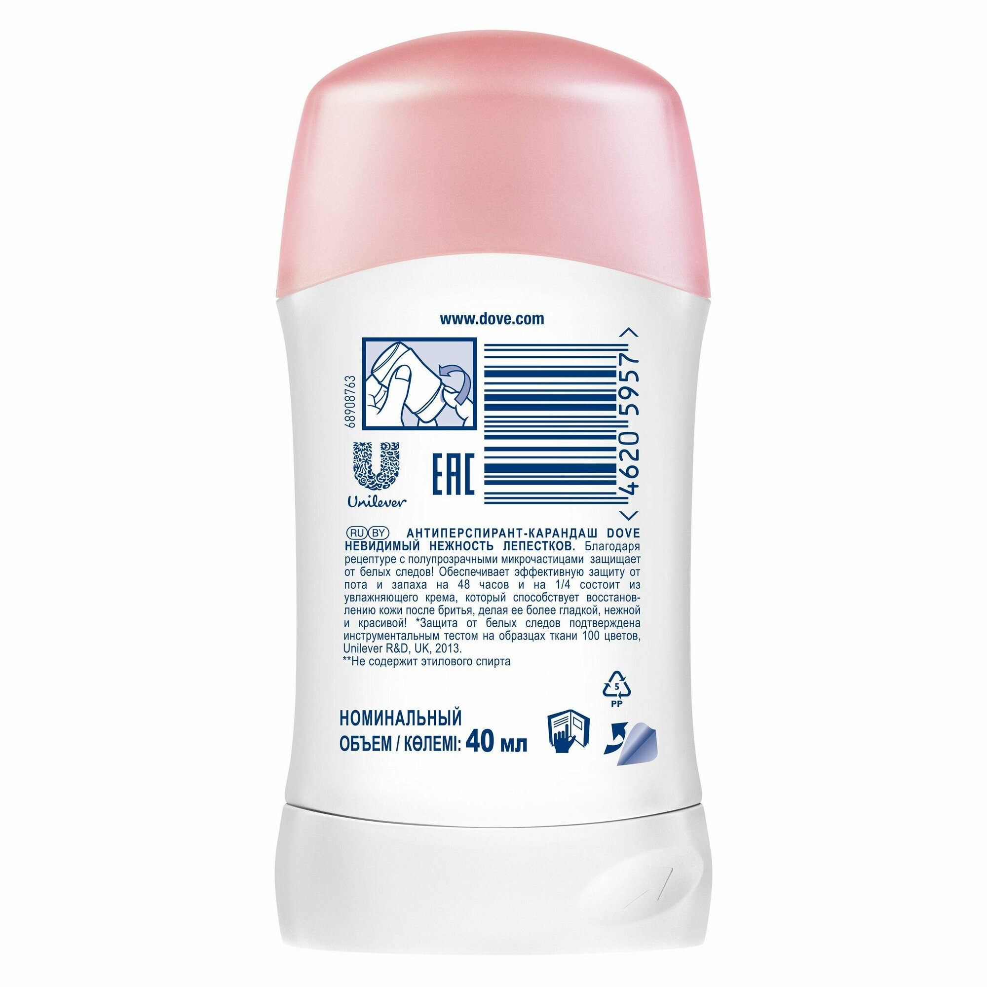 Unilever (Юнилевер) 0570 дезодорант Dove/дав антиперспирант- стик Невидимый Нежность лепестков 40 мл