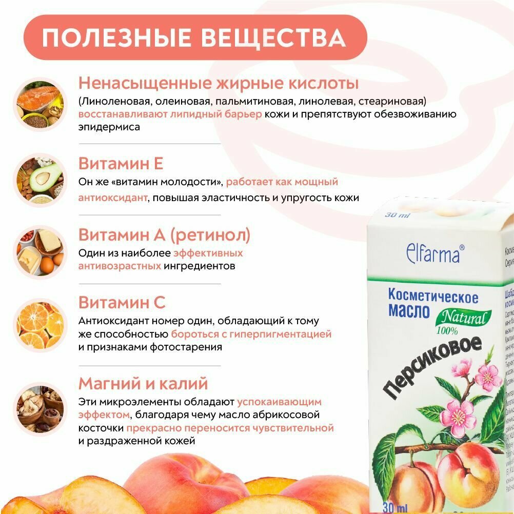 Персиковое косметическое масло, Эльфарма, 30 мл. интересное: