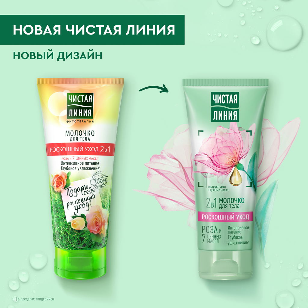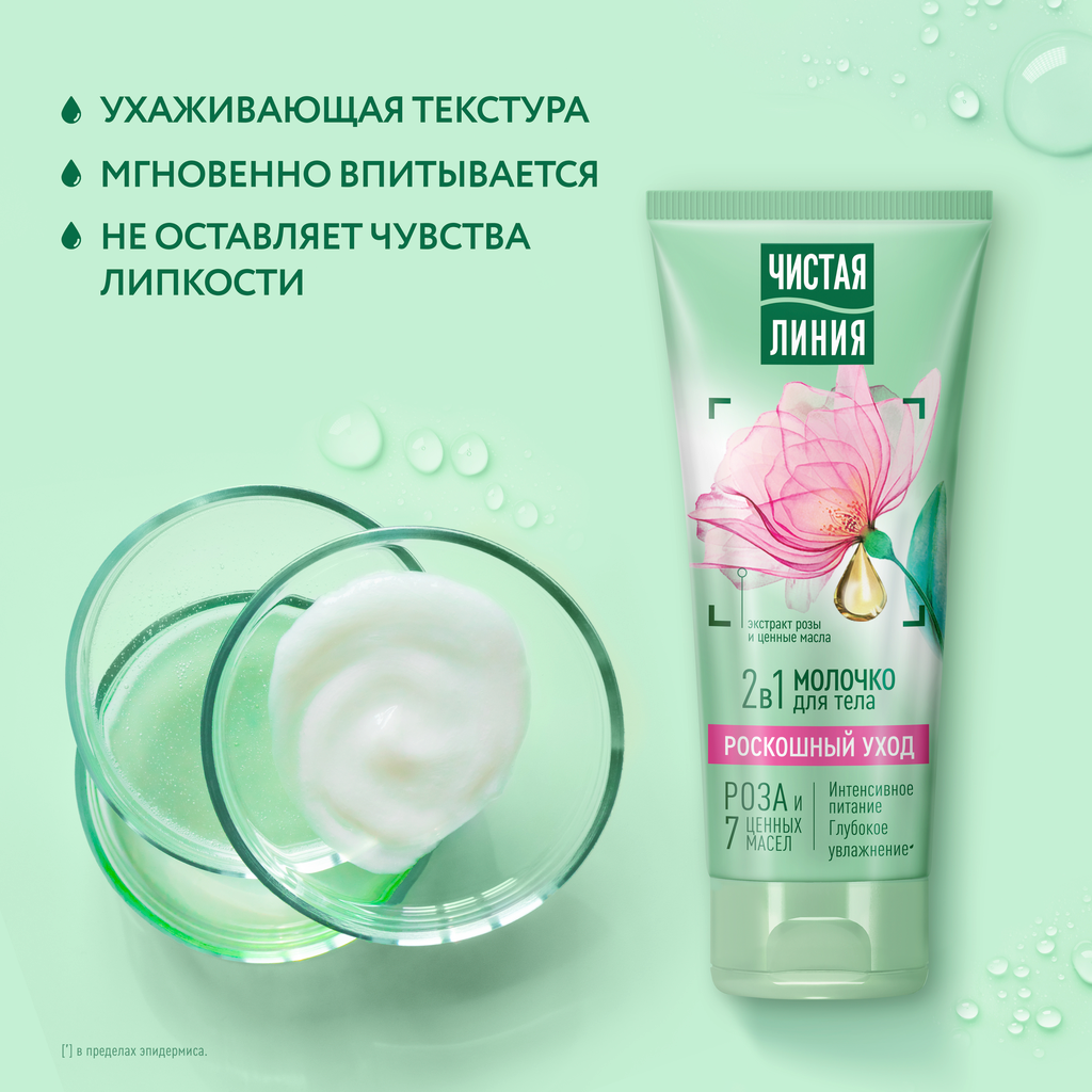 Молочко для тела Чистая линия Роскошный уход 2 в 1, 200 мл