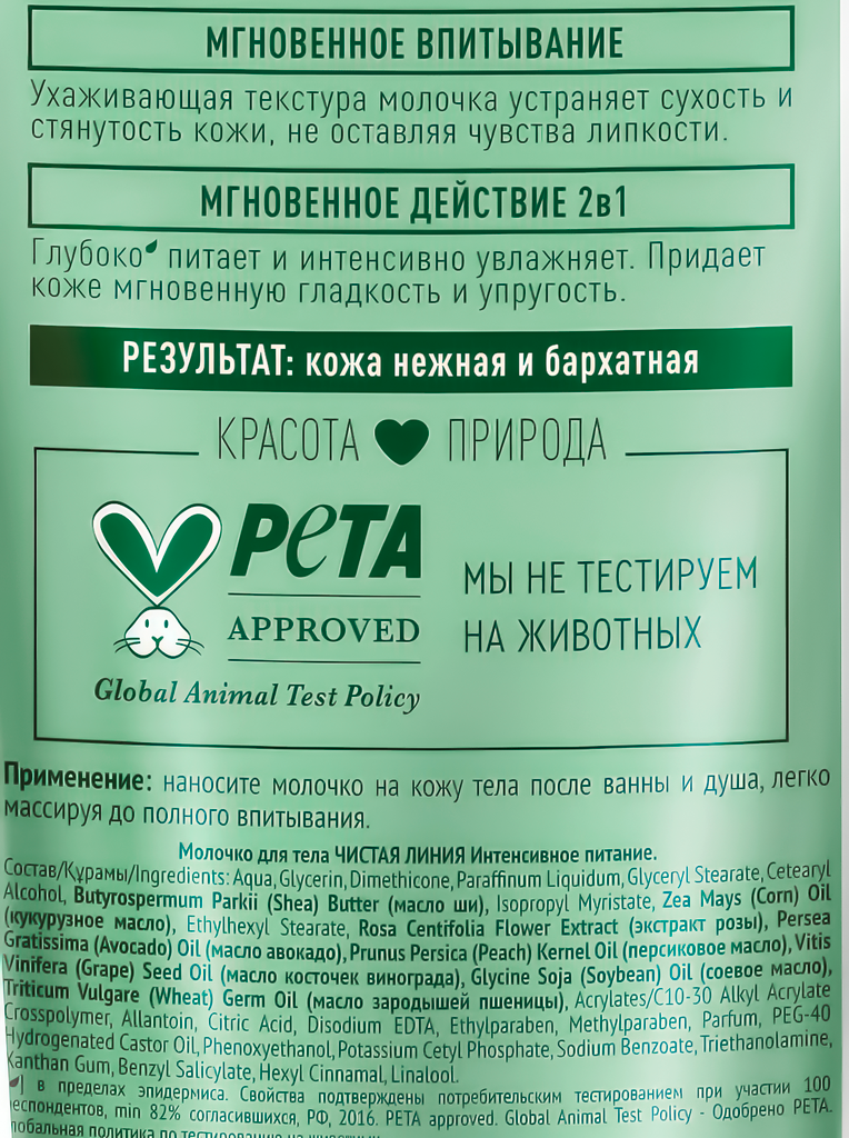 Молочко для тела Чистая Линия Интенсивное питание, 200 мл (67605394)