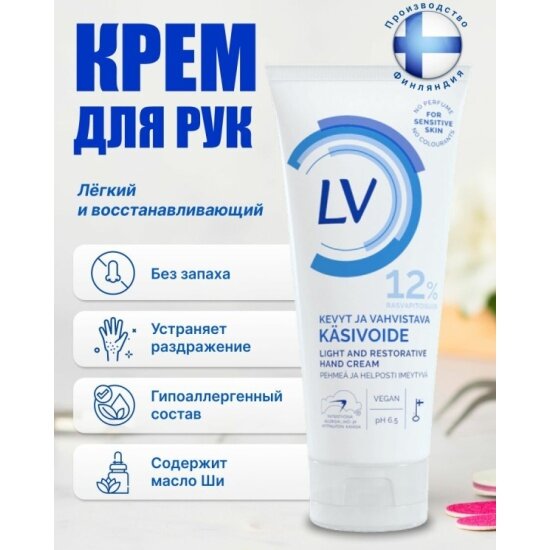 Крем для рук LV, восстанавливающий, лёгкий крем, 100 мл. (Финляндия)