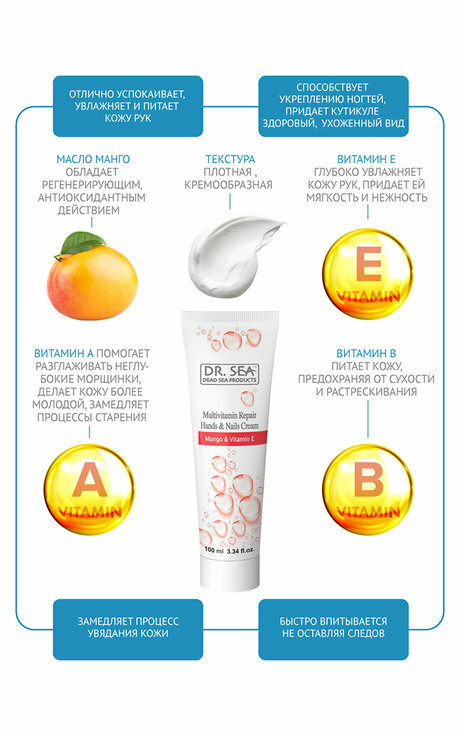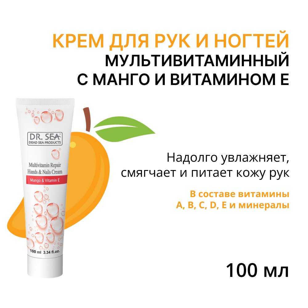 Dr. Sea Крем для рук и ногтей Мультивитаминный с манго и витамином Е, 100 мл