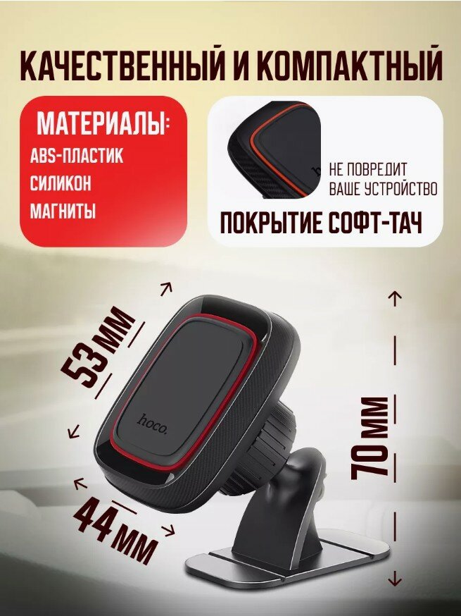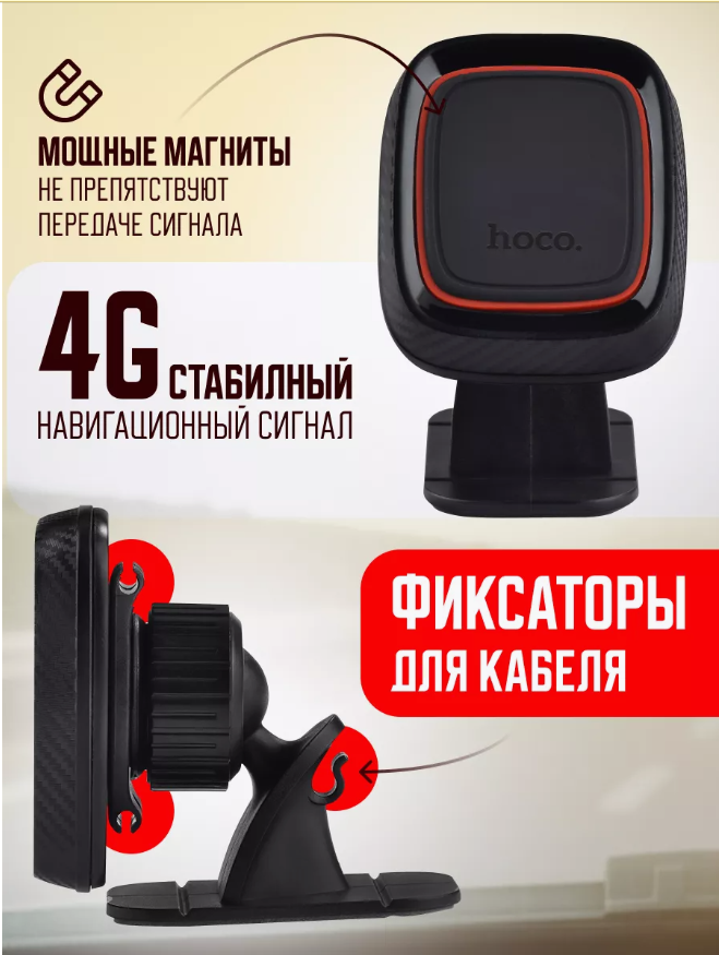 Автомобильный держатель для смартфона Hoco CA24, торпедо, магнитный, черный