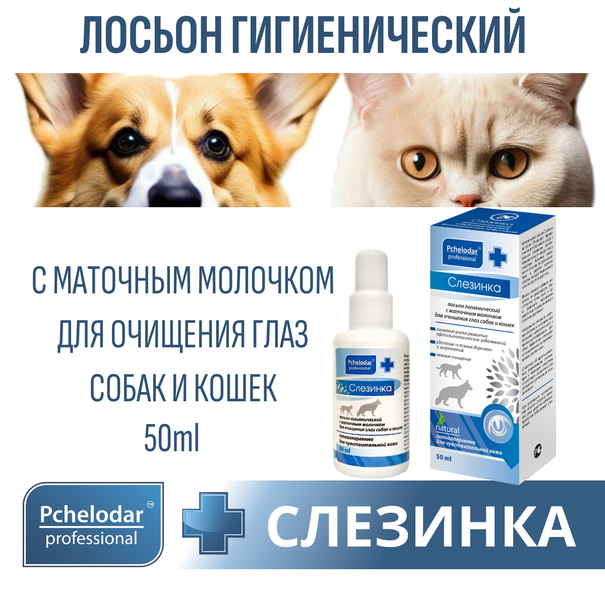 Лосьон Слезинка 50мл гигиенический с маточным молочком для очищения глаз собак и кошек.