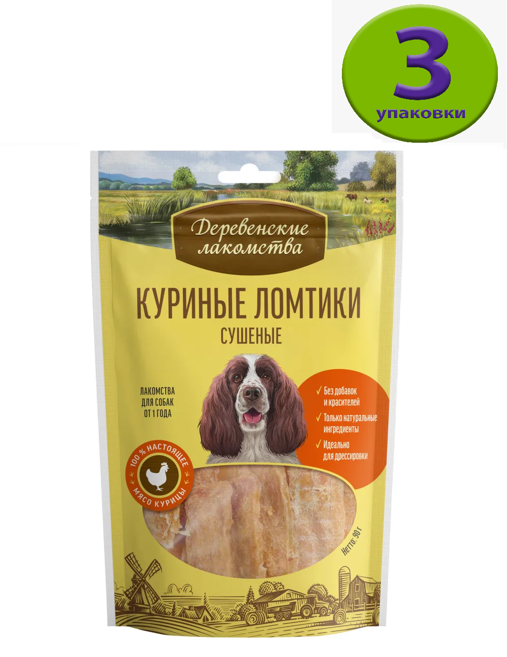 Купить Деревенские лакомства 90 г 100 % мяса куриные ломтики сушеные для собак 3 шт.