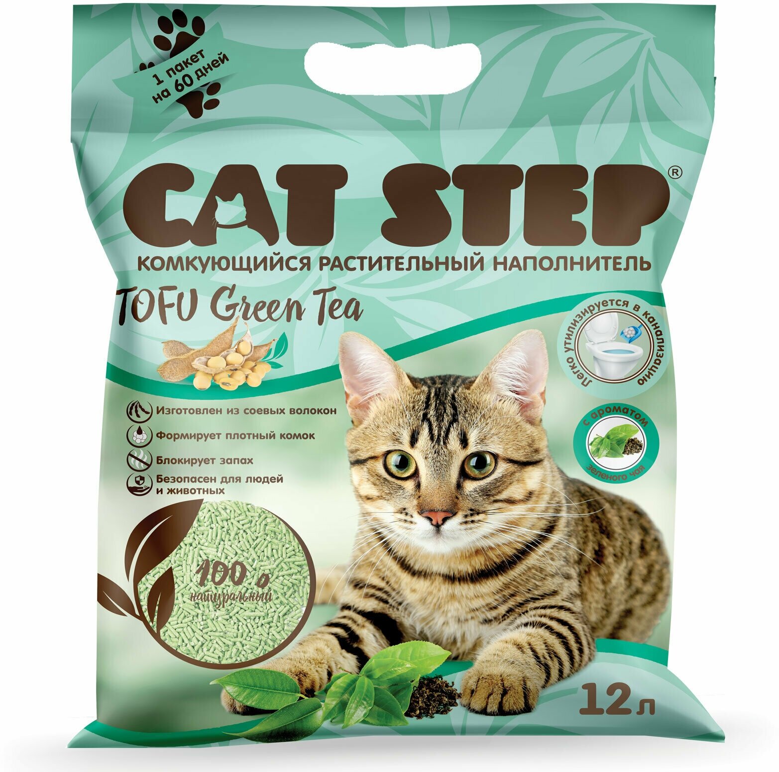Кэт Степ Tofu Green Tea Наполнитель растительный комкующийся 12л .